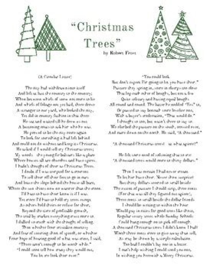 Robert Frost’s Christmas Trees From America’s New England poet Robert Frost, writing in 1916, comes the poem “Christmas Trees (A Christmas Circular Letter),” about a city man who comes to the speaker’s country farm offering to buy all the pine trees behind his farmhouse to sell in the city as Christmas trees.