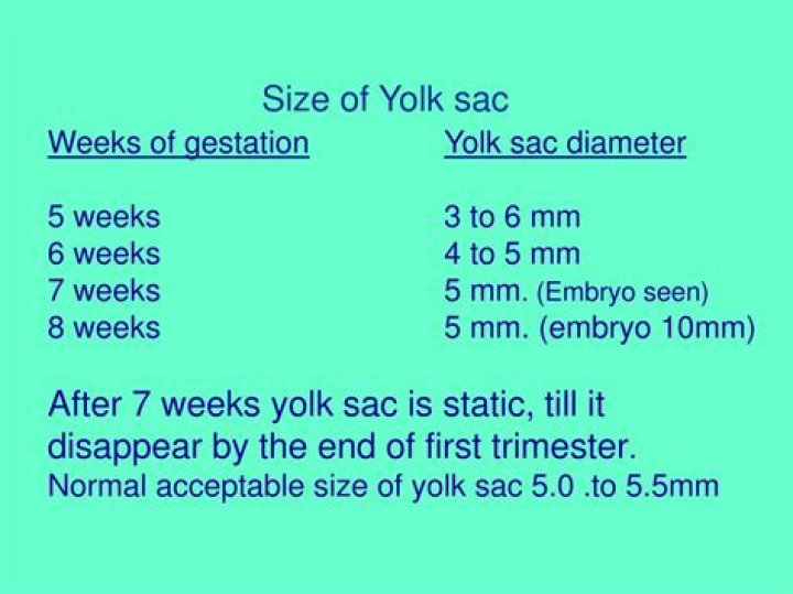 The fetal pole is usually visible towards the end of the 5th week, the embryo is first seen as a nubbin of tissue adjacent to but distinct from the yolk sac, developing along the chorionic margin of the yolk sac; it is approximately 2 mm in length at 5 weeks.