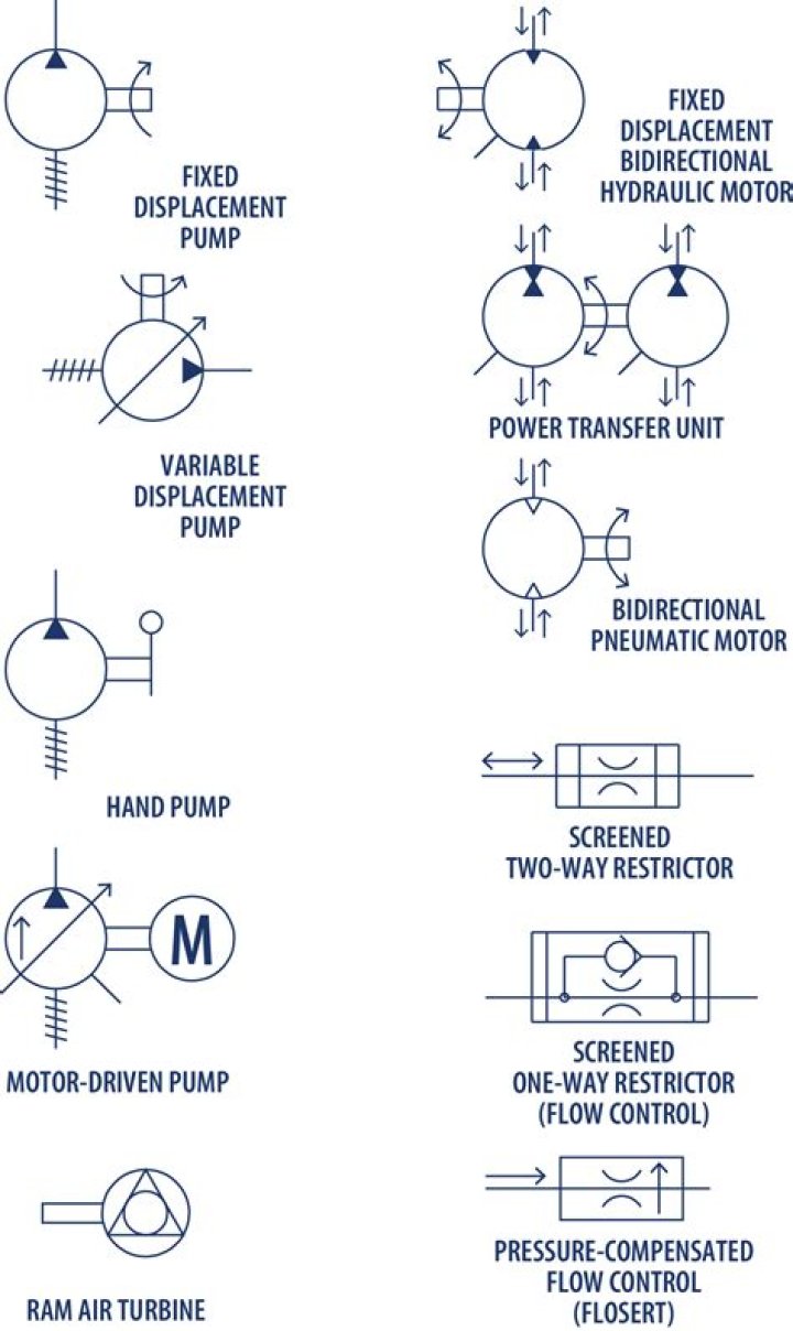 Hydraulic symbols are issued and controlled by The International Standards Organization (ISO), standard ISO 1219-1:2012. The symbols do not identify component size or their actual position on the machine, however the symbols do provide vital information relating to the configurations and flow path connections.