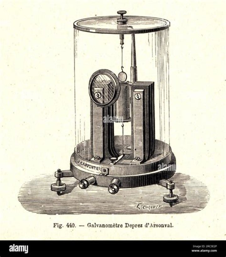 Definition of d’arsonval galvanometer : a moving-coil galvanometer whose coil is provided with a filament suspension or with pivots and hairspring and rotates about a stationary soft-iron core between the poles of a strong permanent magnet.