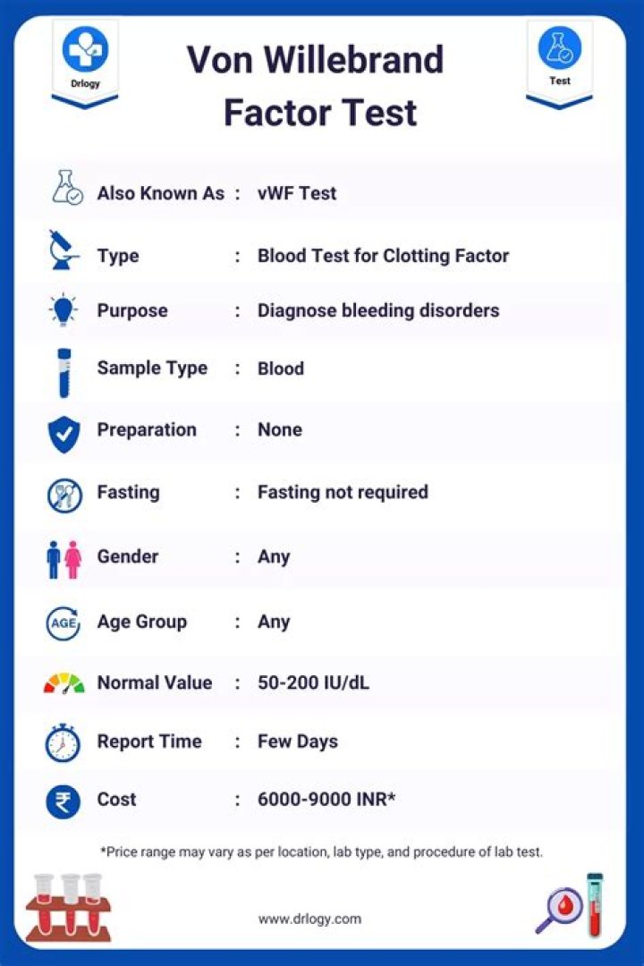 - Von Willebrand factor antigen―To measure the amount of VWF in the blood.