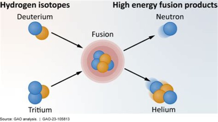 One possible fusion reaction occurs when different forms (or isotopes) of hydrogen collide and fuse to form nuclei of helium. These collisions also release high energy neutrons. Similar fusion reactions have been made to happen here on Earth by using the hydrogen isotopes deuterium and tritium.
