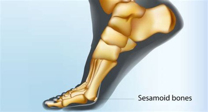 Usually, if the sesamoid bones are broken, walking causes a deep achy or sharp pain in the ball of the foot behind the big toe. The area may be swollen and red. If doctors suspect a sesamoid fracture, x-rays are taken. If results x-rays are unclear, magnetic resonance imaging (MRI) may be done.