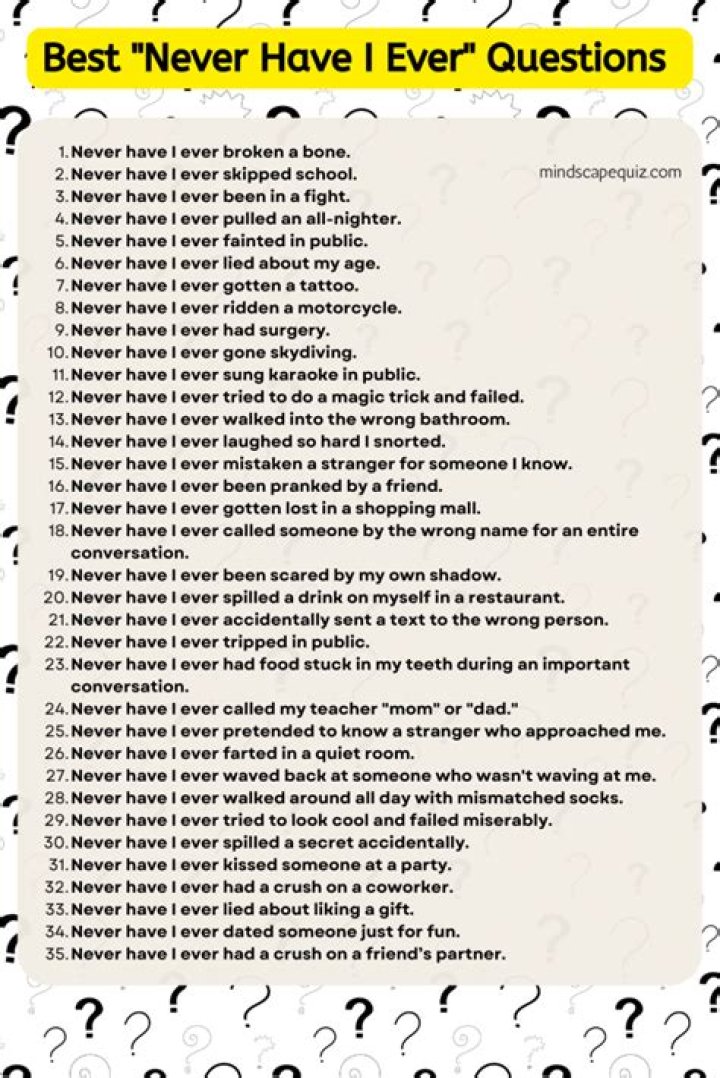 How can this game be played over text? The way I play, is I say “Never have I ever…” and then we count down from ten. So for example, if you have done it you say “9”, then if you get another one, you say “8”, etc.