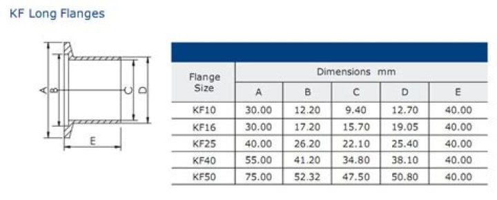 | KF25/40mm | Tube OD: 1″, Flange OD: 1.57″ |