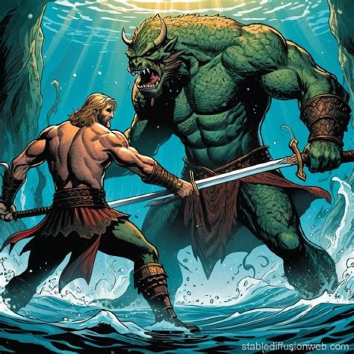 Unruffled, Beowulf accuses Unferth of drunkenness and describes his own version of what happened in the swimming match. Carrying swords to defend themselves against sea monsters, he and Breca had struggled in icy waters for five days and five nights when suddenly Beowulf found himself pulled under by a monster.
