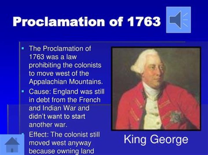 October 7, 1763: King George III signs the Proclamation of 1763 The Proclamation of 1763 declared that all land transactions made to the west of the Appalachian crest would be governed by the British government rather than by the colonies.