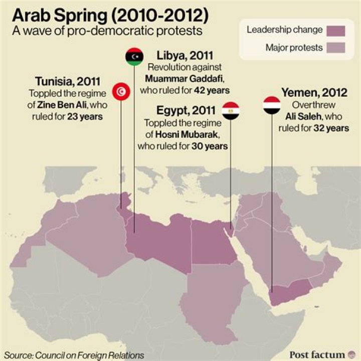 What was a positive result of the protests during the Arab Spring of 2011? Leaders of three countries were forced out of power.