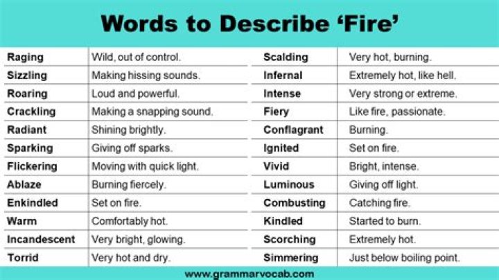 Having learned what is fire, let’s see some fire adjectives and vocabulary words related to fire and heat. Adjectives Words to Describe Fire Today we’ll have a look at around 50 most used words to describe the hot nature of fire like lava, flame, livid, sparkle, searing etc. Keep Learning new vocabulary words with EnglishBix!