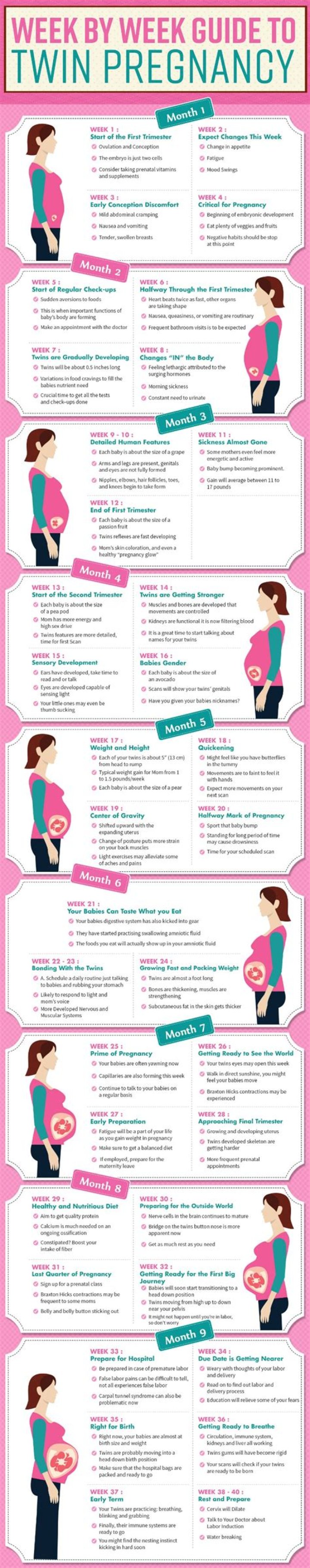 If you’re 35 weeks pregnant with twins or other multiples, it’s a good idea to know the signs of preterm labor because, with twins, there is about a 50 percent greater chance of going into preterm labor. There’s about a 90 percent greater chance of going into preterm labor if you are pregnant with triplets.