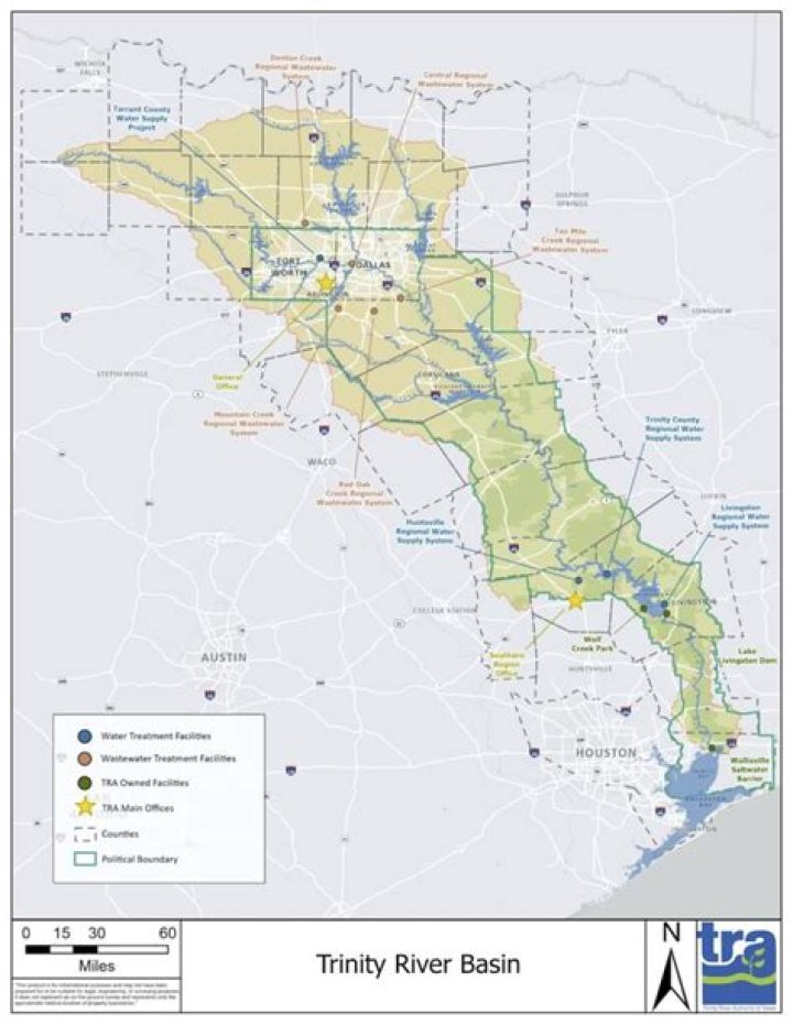 Where does the Trinity River basin start and end?