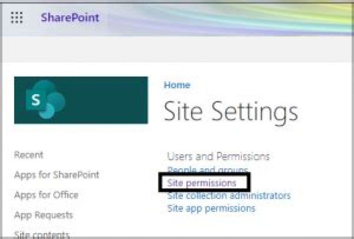 - Click the ‘Site Permissions’ link (Under the ‘Users and Permissions’ section).