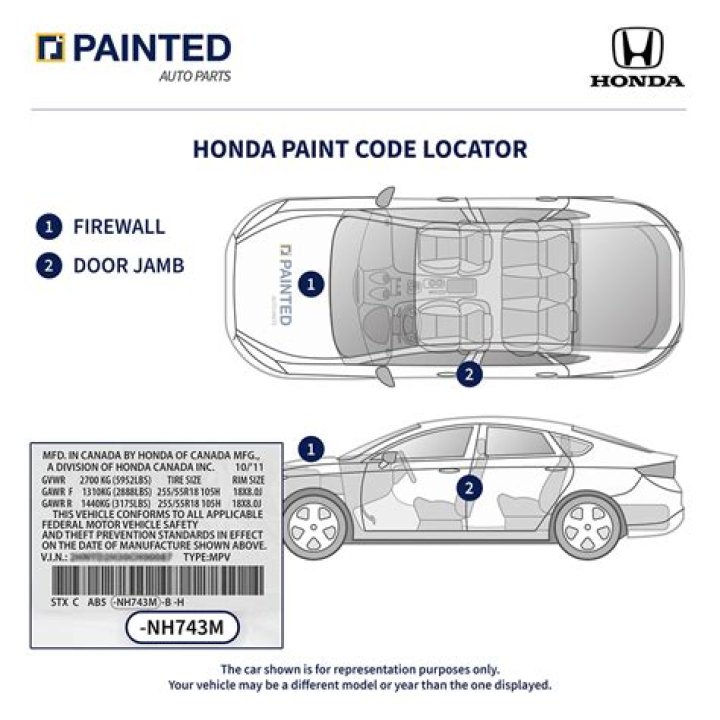 For all Acura models, the paint color code is typically located in the driver side door jamb, but in some cases can be on the passenger side door jamb. The paint code will not be the literal name of your vehicle”™s color but rather a string containing both letters and numbers.