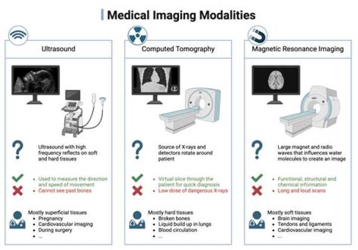 Spine – MRI is best at imaging the spinal cord and nerves. Brain – CT is used when speed is important, as in trauma and stroke. MRI is best when the images need to be very detailed, looking for cancer, causes of dementia or neurological diseases, or looking at places where bone might interfere.