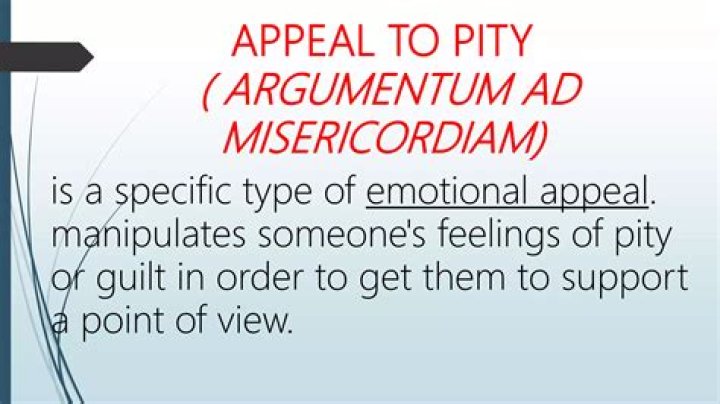 An appeal to pity (also called argumentum ad misericordiam, the sob story, or the Galileo argument) is a fallacy in which someone tries to win support for an argument or idea by exploiting his opponent’s feelings of pity or guilt. It is a specific kind of appeal to emotion.
