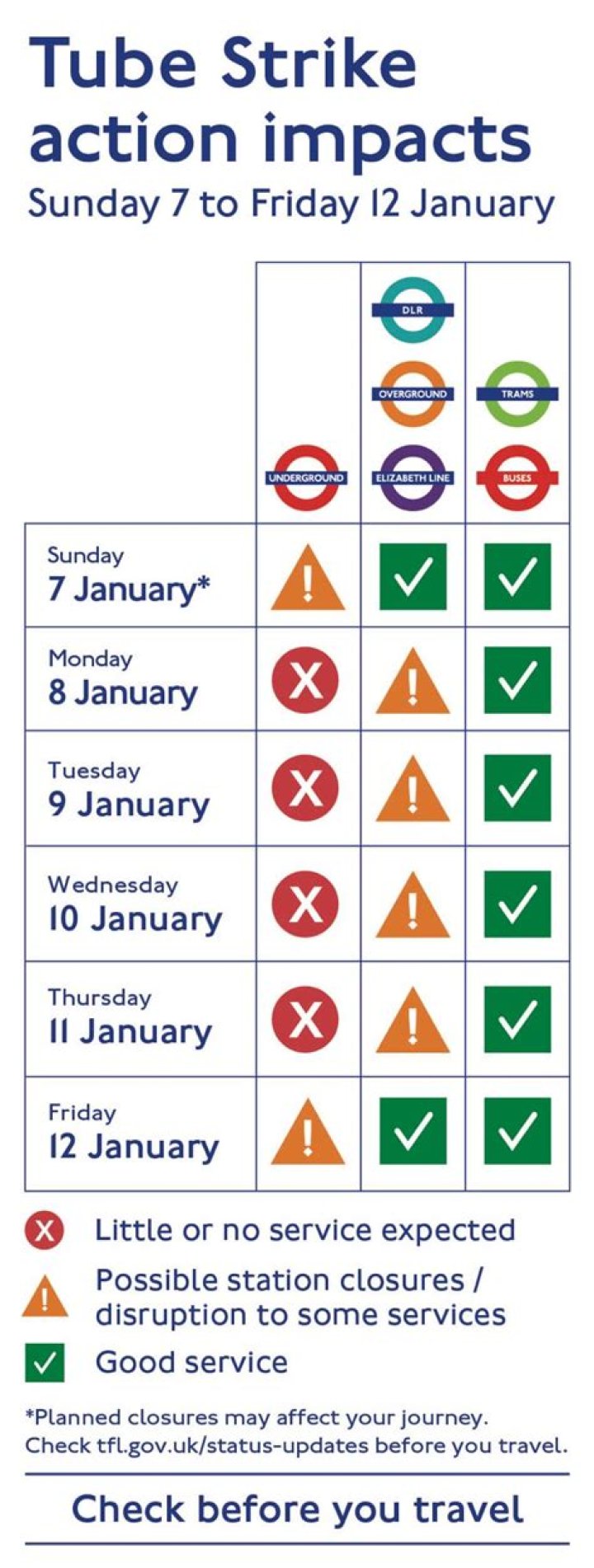 Central and Victoria lines Services will be severely disrupted during the strikes. Services will ramp down from 19:00 on strike days, with strikes starting at 20:30 in the evening and running through to 04:29 the following morning.