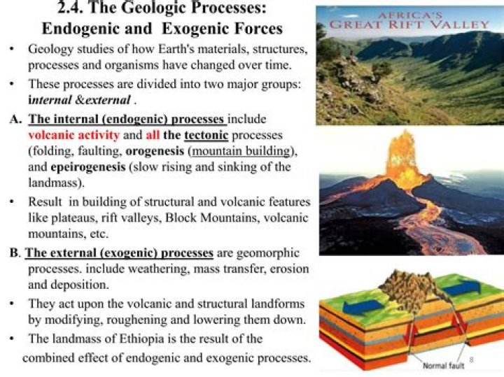 Orogenesis, the process of mountain building, occurs when two tectonic plates collide – either forcing material upwards to form mountain belts such as the Alps or Himalayas or causing one plate to be subducted below the other, resulting in volcanic mountain chains such as the Andes.
