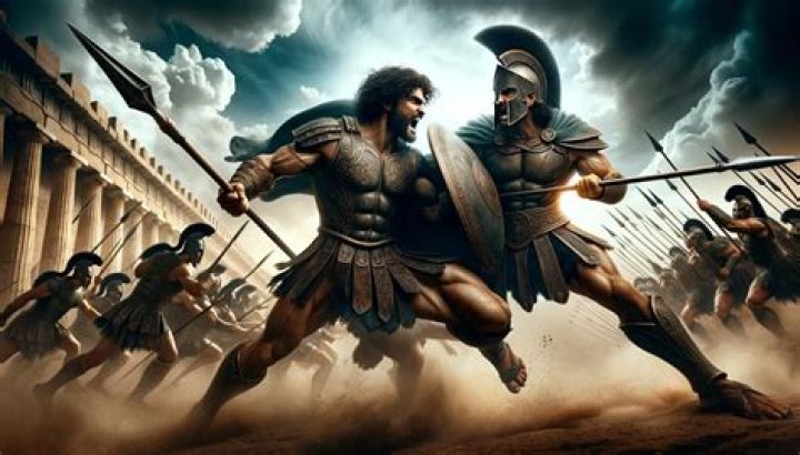 As the Greeks stormed the Trojan castle, Hector came out to meet Achilles in single combat—wearing the fateful armor of Achilles taken off the body of Patroclus. Achilles aimed and shot his spear into a small gap in the neck area of that armor, killing Hector.