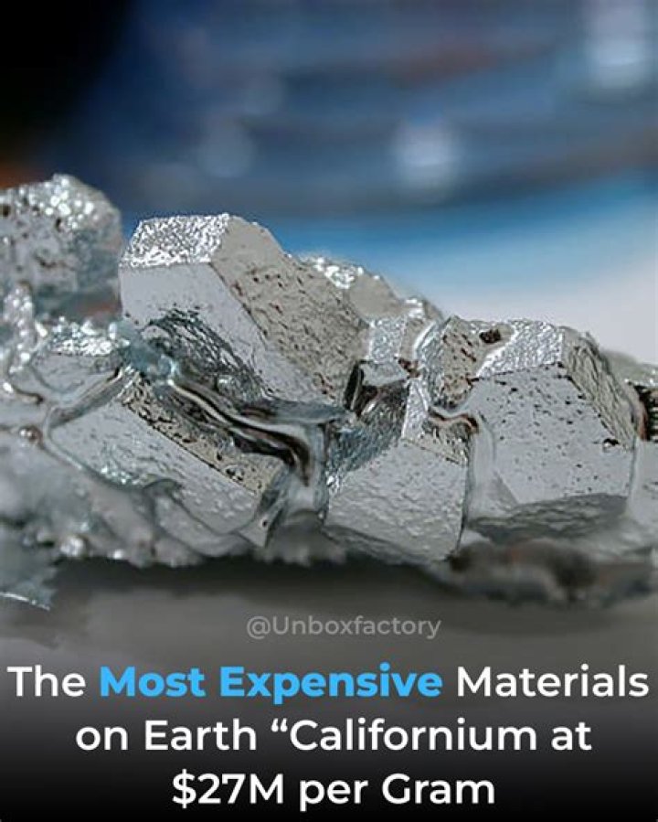 Californium – $25 million per gram The element was produced from curium and alpha particles, but only a few grams of the element have ever been produced. In today’s world, only a half-gram of Californium is produced each year, so that’s the reason why the price tag on it is so high.