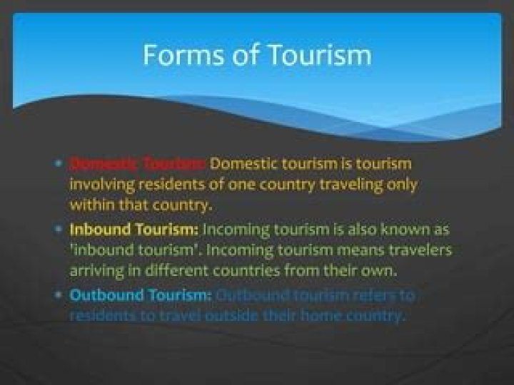 Concepts and forms (types) of tourism. Domestic tourism, involving residents of the given country traveling only within this country; Inbound tourism, involving non- resident traveling in the given country; Outbound tourism, involving residents traveling in another country.