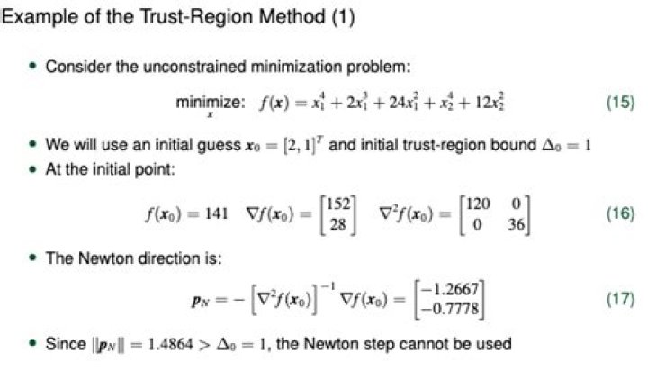 Trust-region method (TRM) is one of the most important numerical optimization methods in solving nonlinear programming (NLP) problems. The convergence can be ensured that the size of the “trust region” (usually defined by the radius in Euclidean norm) in each iteration would depend on the improvement previously made.